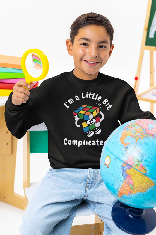Kids’ “I’m a Little Bit… Complicated” Sweatshirt – Unisex Fit | Black, White, Grey, Royal | Confident, Colourful & Clever