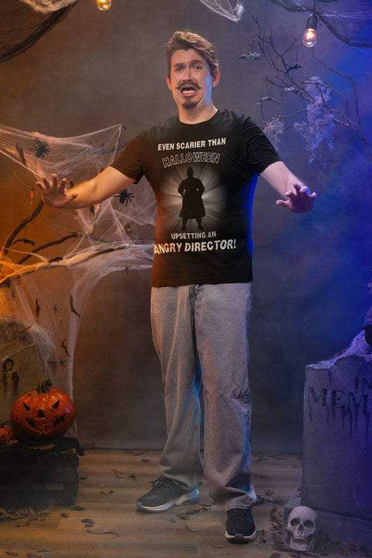 Even Scarier Than Halloween Men’s T-Shirt – Upsetting an Angry Director, Theatre-Inspired Unisex Design