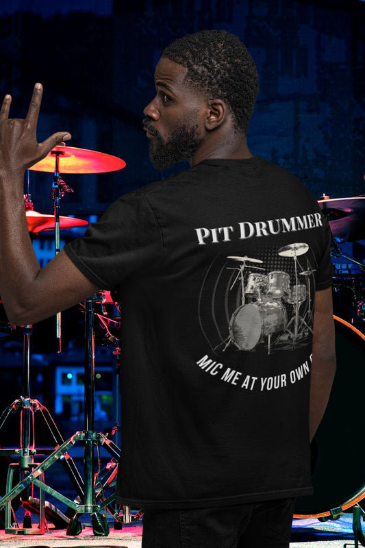 Men’s “Mic Me at Your Own Risk” Pit Drummer Tech-Week T-Shirt – Theatre Collection | Unisex Fit | Black