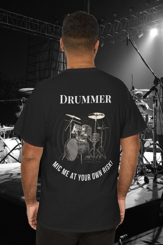 Men’s “Mic Me at Your Own Risk” Drummer T-Shirt – Unisex Fit | Musician Gift | Black