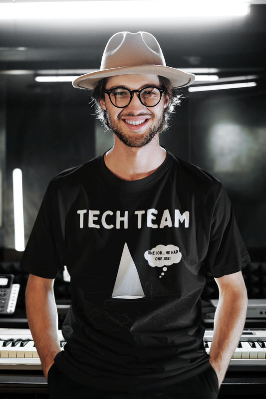 "Tech Team: One Job" Men's Theatre T-Shirt – Unisex Design for Backstage Legends