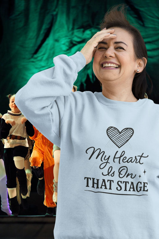 My Heart Is On That Stage Sweatshirt – Theatre, Dance & Music Supporter Gift