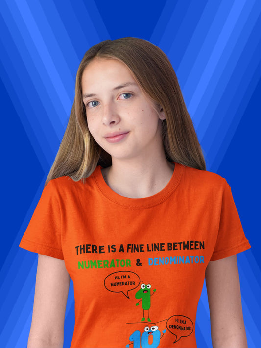 STEM Maths Humour Kid's T-Shirt: Fine Line Between Numerator & Denominator