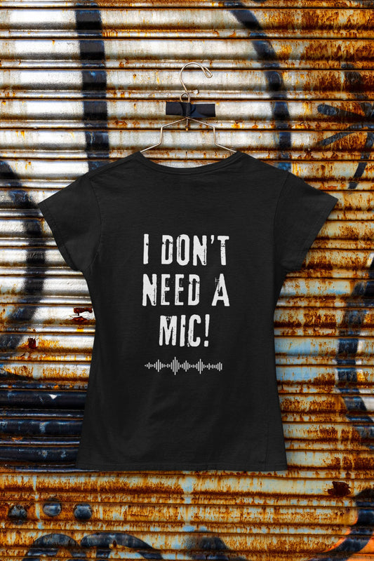 "I DON'T NEED A MIC!" Women's Fitted Singer Stage T-Shirt