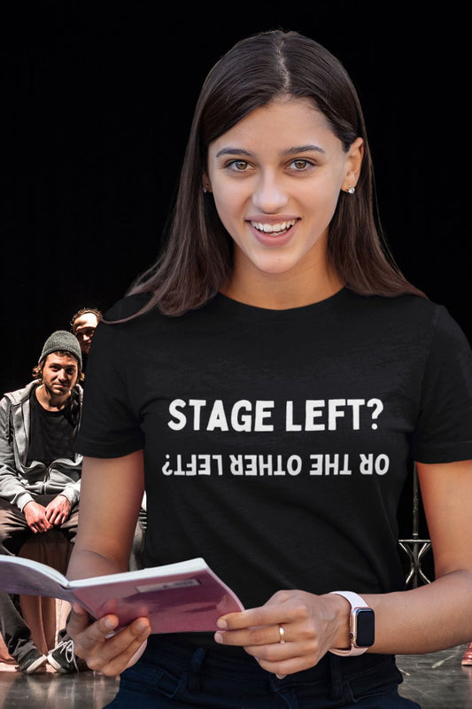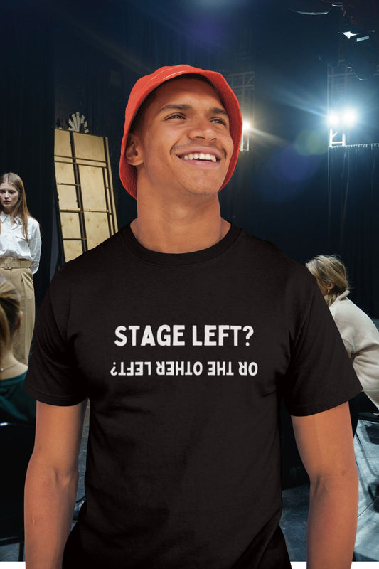 Men’s “Stage Left? …Or the Other Left?” Unisex Black T-Shirt – Theatre Humour Design