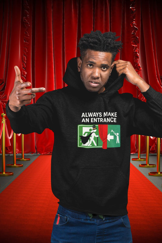 Always Make an Entrance & Dramatic Exit Hoodie – Funny Theatre Hoodie for Performers, Actors, and Stage Lovers (Unisex)