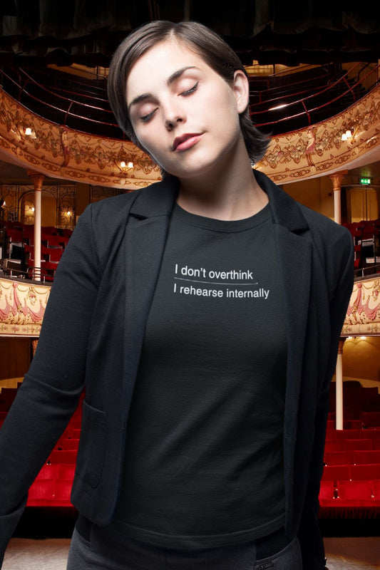 i don’t overthink / i rehearse internally – women’s fitted theatre T-shirt