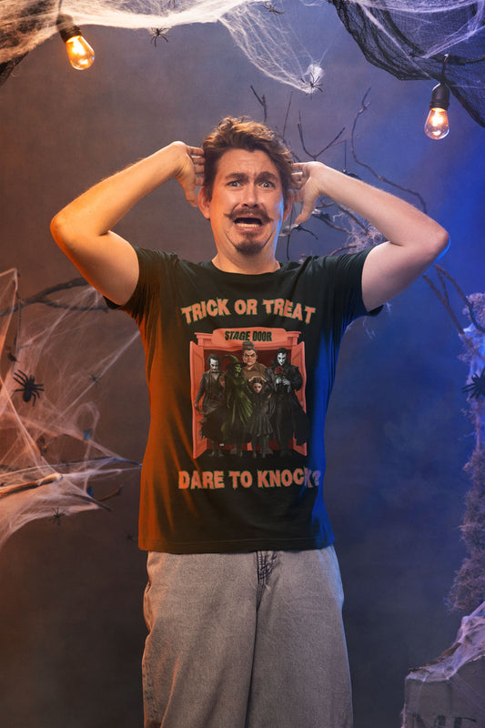 Trick or Treat Men’s T-Shirt – Theatre-Inspired Halloween Design (Unisex Fit)