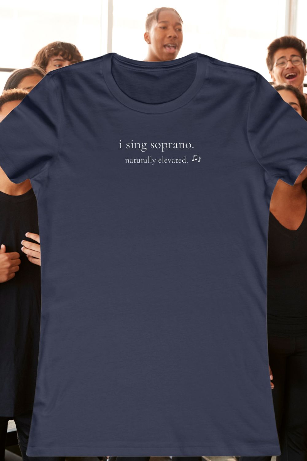The “I Sing Soprano. Naturally Elevated.” women’s fitted T-shirt is designed for choir members and vocalists who carry the upper line with confidence. Clean, understated typography keeps the look refined and wearable, whether you’re heading to rehearsal, performance, or everyday life.