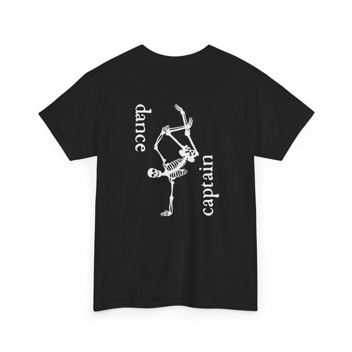 This Men's Dance Captain T-Shirt is made for those who lead the way on the dance floor. Featuring a bold skeleton performing a dynamic dance move, with the words "Dance Captain" flanking the graphic, this design is all about showing the world that you're here to lead, support, and guide your fellow dancers. Printed on the back, it’s a stylish way to make sure you’re seen and heard, whether you're leading a routine, teaching choreography, or simply embodying the role of a dance leader.